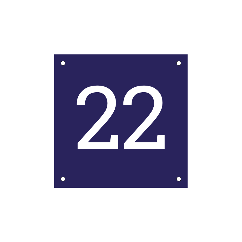 Husskylt i storlek 210×210 mm med vit text. Produceras av 1,5 mm aluminium. Din valda text printas på folie med ett skyddande laminat vilket gör den extra slitstark mot väder och vind. Tack vare det motståndskraftiga materialet passar skylten lika bra utomhus som inomhus.