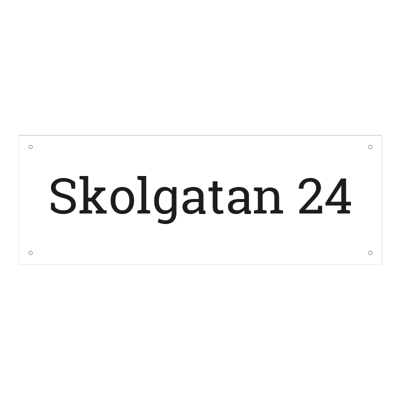 Skapa en husskylt med egen text till ditt hus i standardutförande. Välj kulör och ett passande typsnitt för din design.