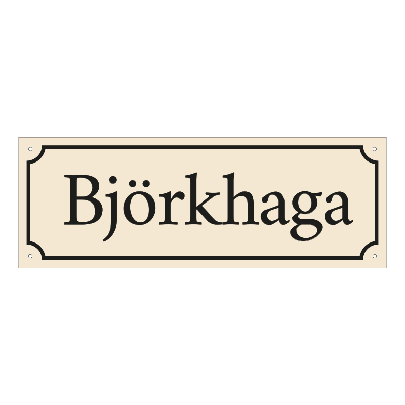 Husskylt emaljlook 600×210 svart text. Produceras av 1,5 mm aluminium. Din valda text printas på folie med ett skyddande laminat vilket gör den extra slitstark mot väder och vind. Tack vare det motståndskraftiga materialet passar skylten lika bra utomhus som inomhus.