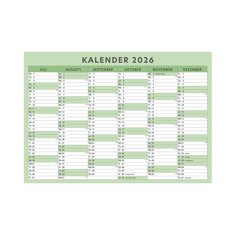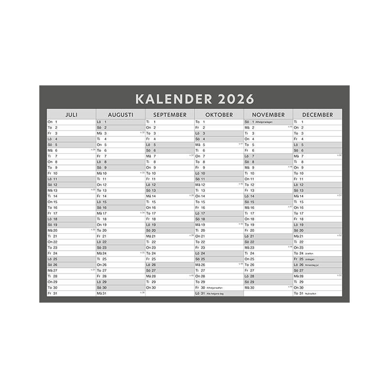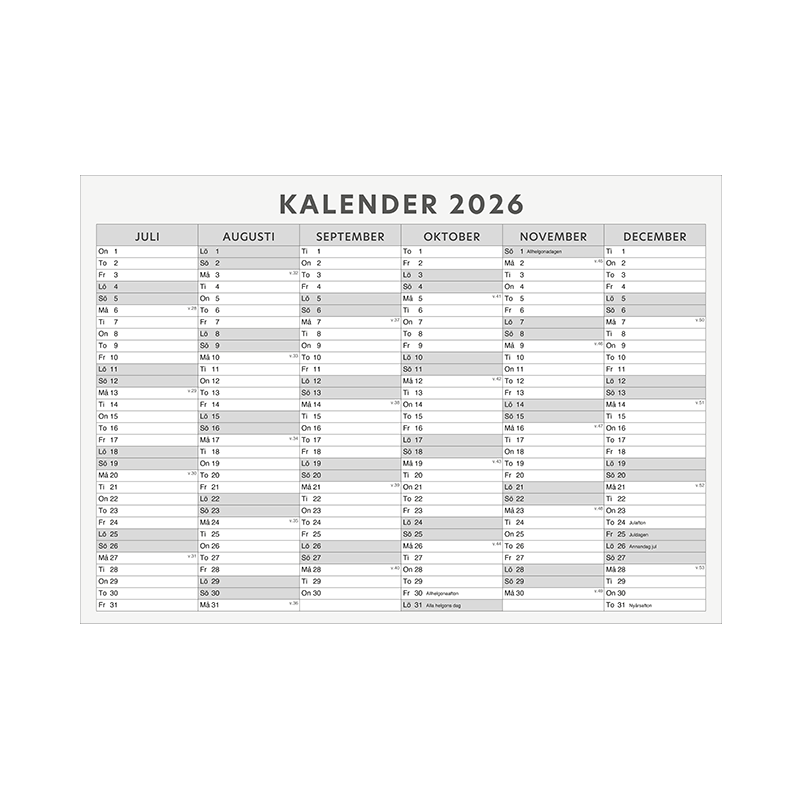 Med denna kalender för höstterminen 2026 får du en bra översikt över helger, helgdagar och veckor. Med ett praktiskt whiteboardlaminat går det dessutom att göra anteckningar direkt mot ytan med whiteboardpennor.