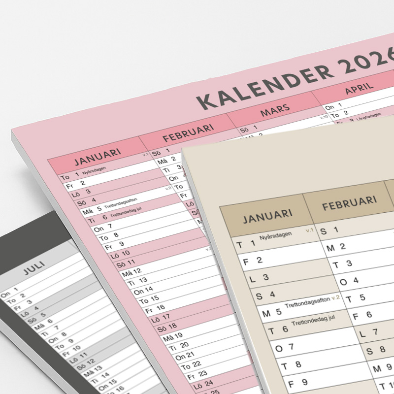 Önskar ert företag hjälp att designa en företagsanpassad kalender? Inga problem, våra grafiker kan enkelt anpassa deisgnen så att den passar in i just er miljö.